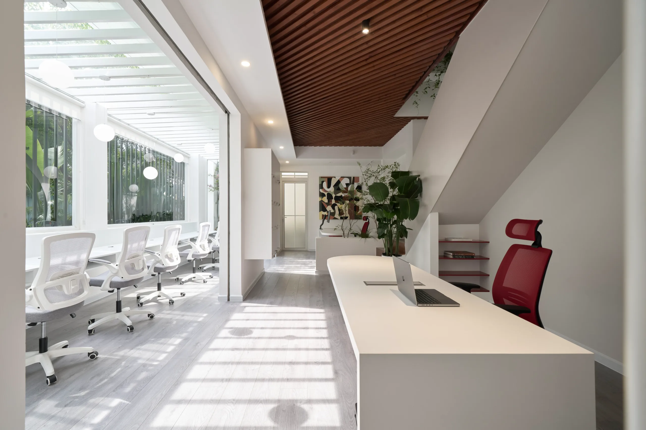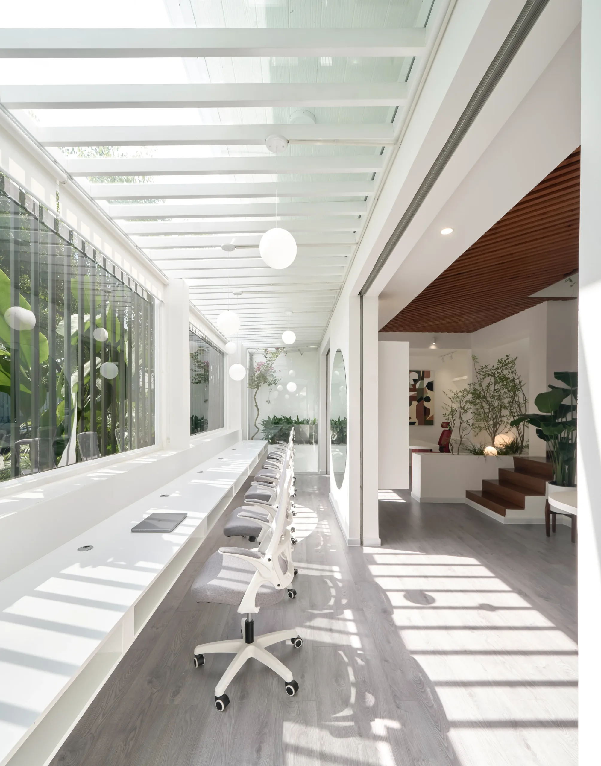 Bên trong, mỗi tầng đều được tổ chức để khuyến khích sự tập trung và sáng tạo: không gian làm việc mở với ánh sáng chan hòa, phòng họp nhỏ gọn mang tính kết nối, và các góc nghỉ xen kẽ mảng xanh. Từ đường nét nội thất đến vật liệu sử dụng, 3C Lab là minh chứng cho cách PAU Architects khai thác thiết kế kiến trúc để tạo nên một nơi làm việc vừa chuyên nghiệp, vừa nuôi dưỡng sự thoải mái hàng ngày.