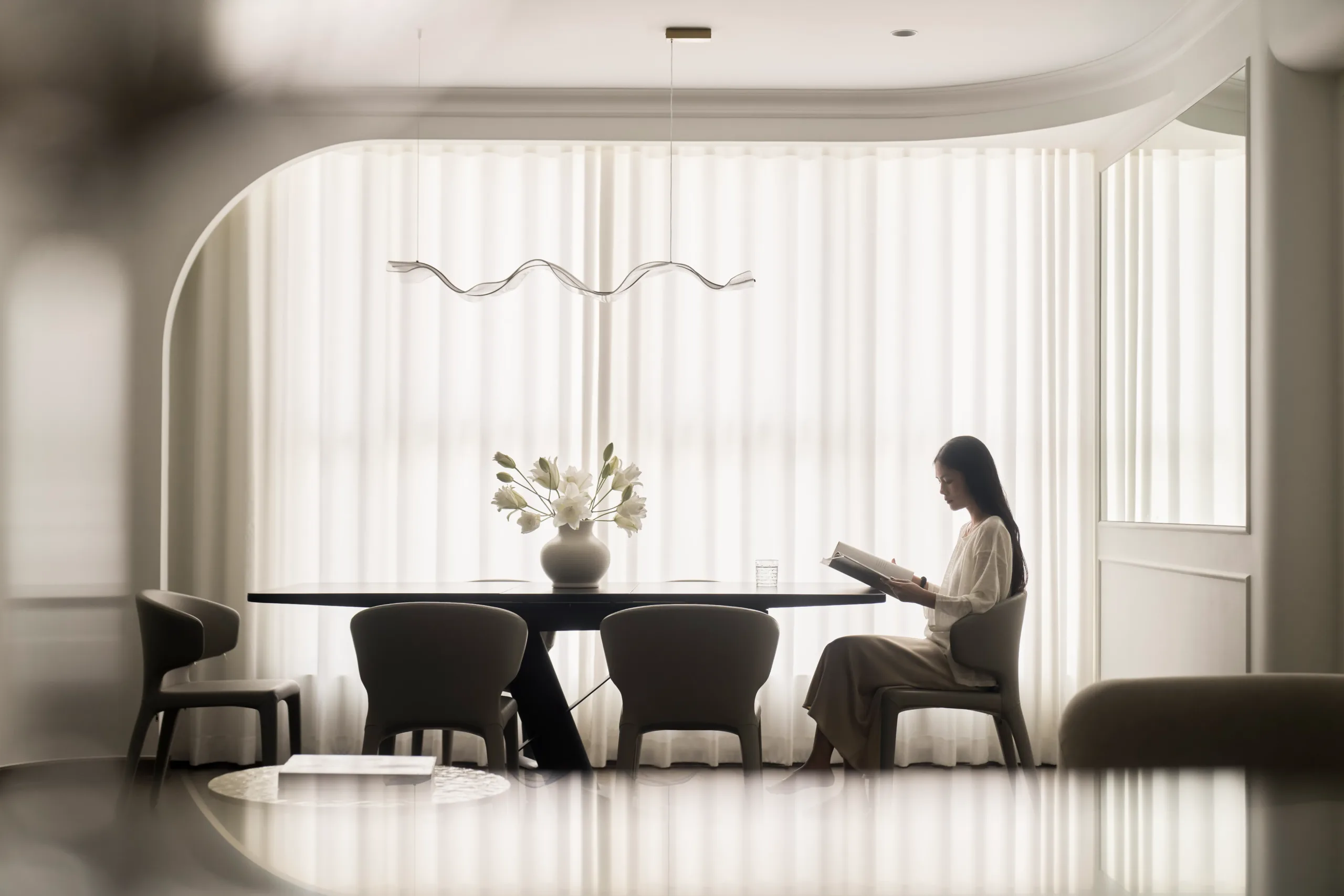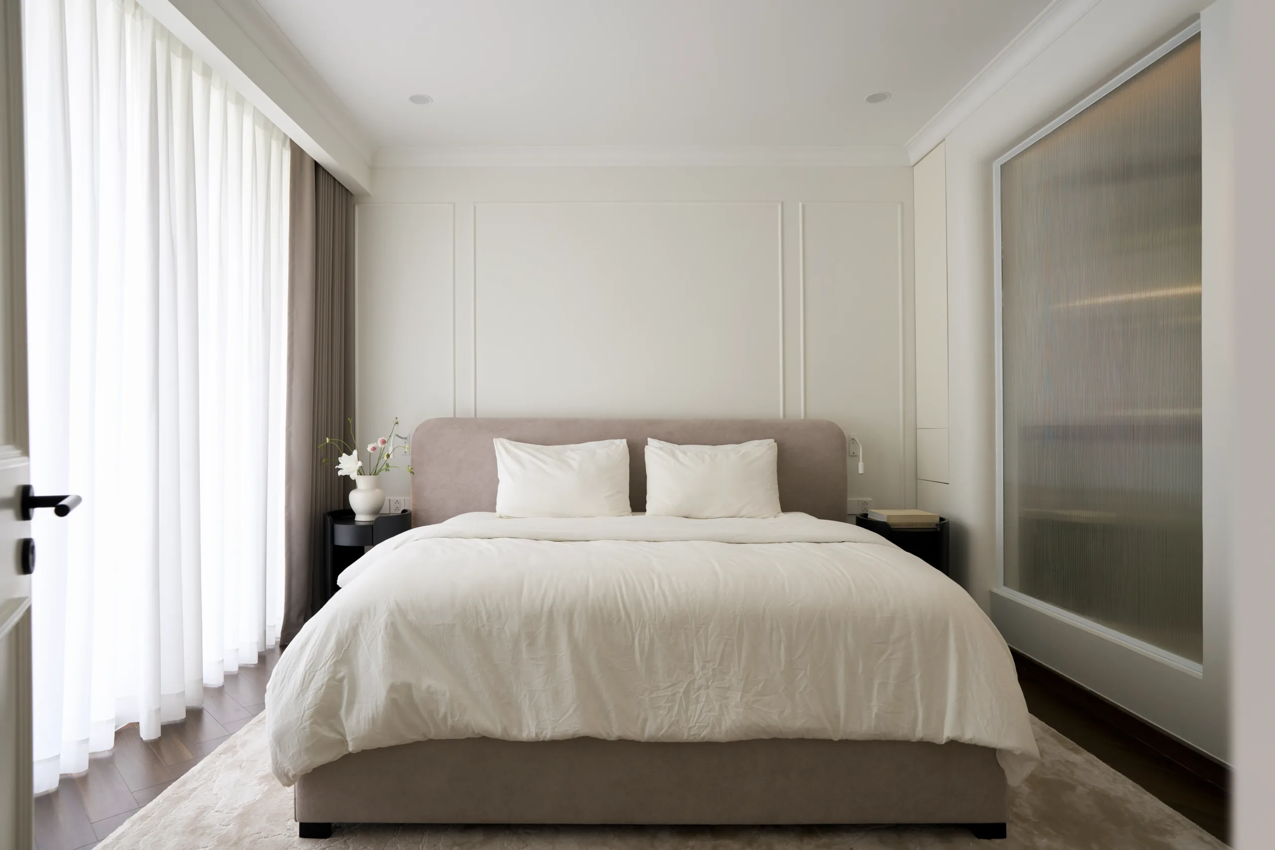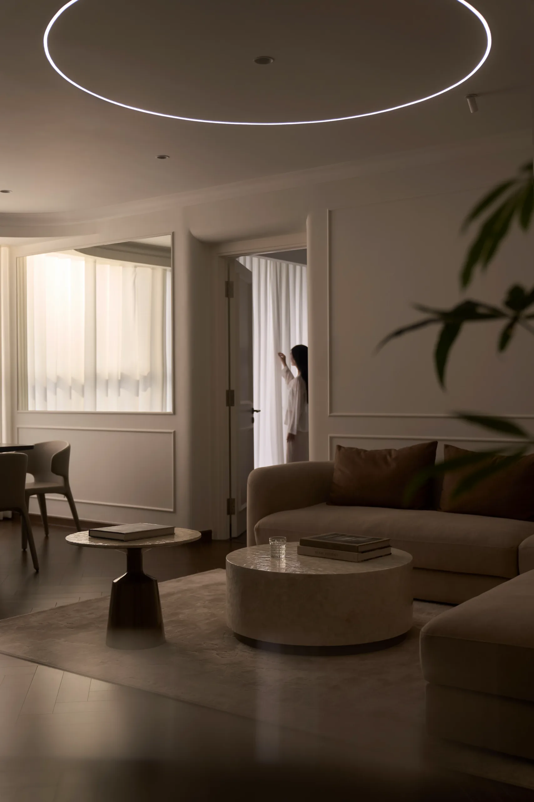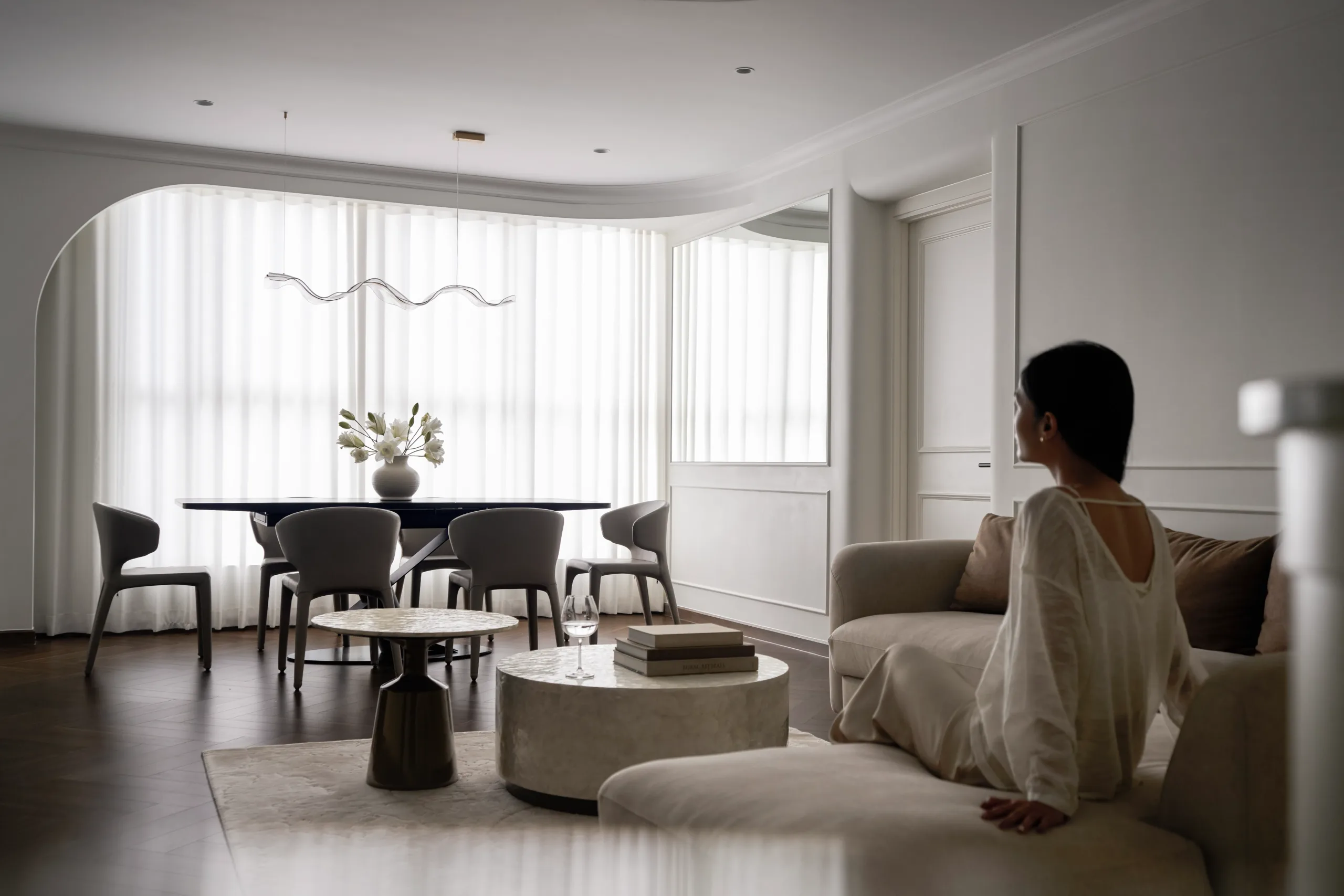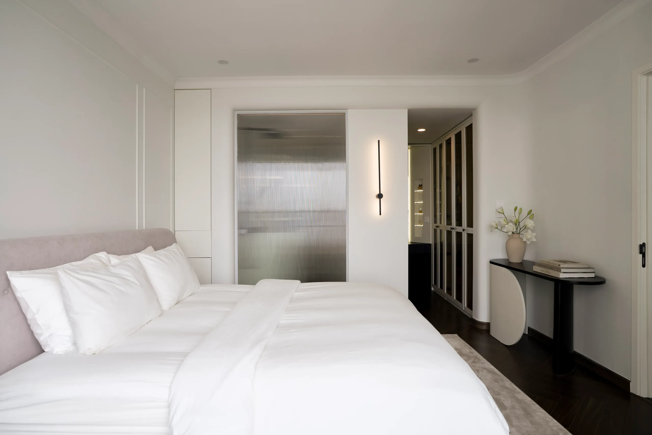 Các không gian riêng tư được lùi về hai bên, giữ sự tách biệt cần thiết, để trục trung tâm được dành trọn cho ánh sáng, cảnh quan và trải nghiệm sống liên tục.