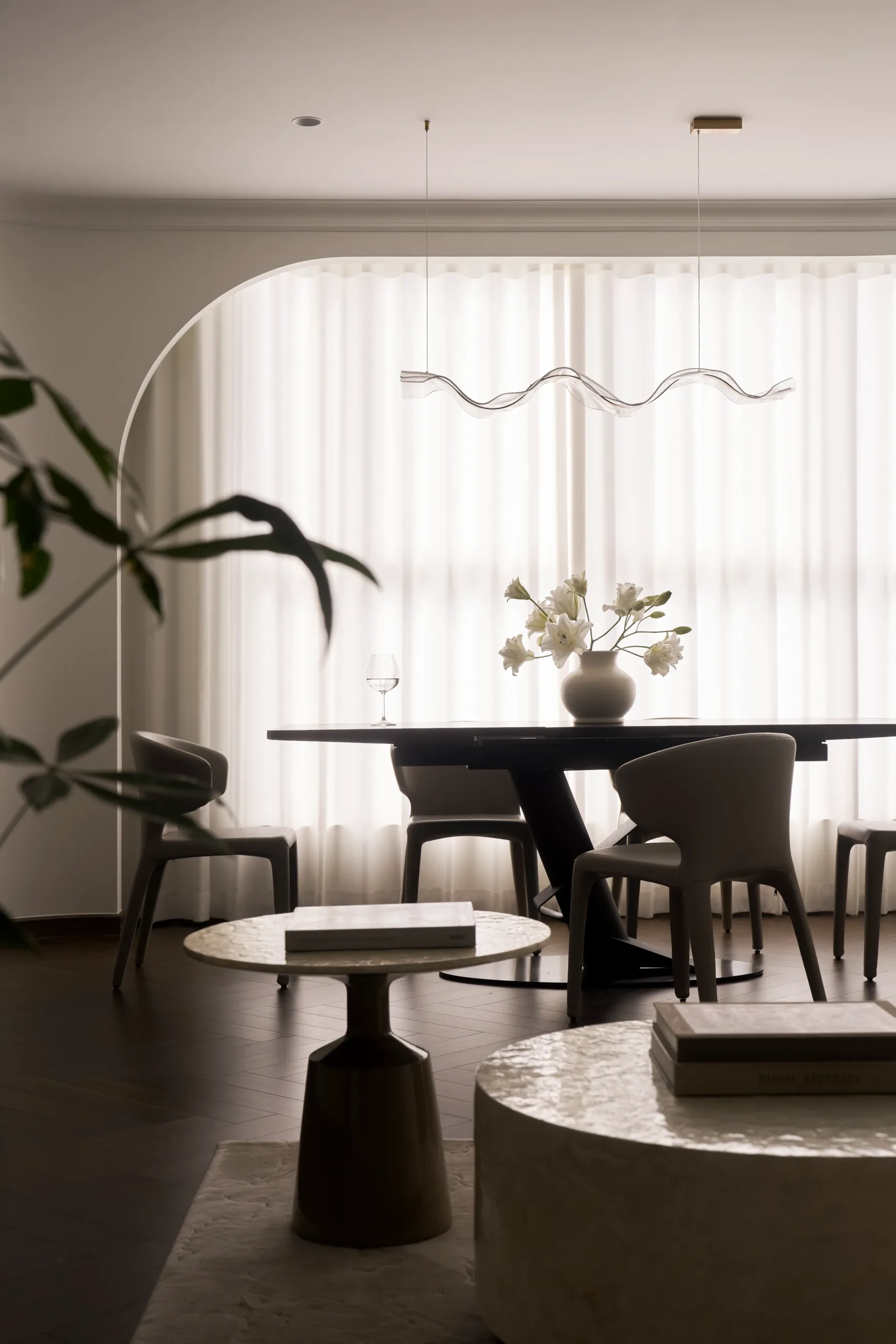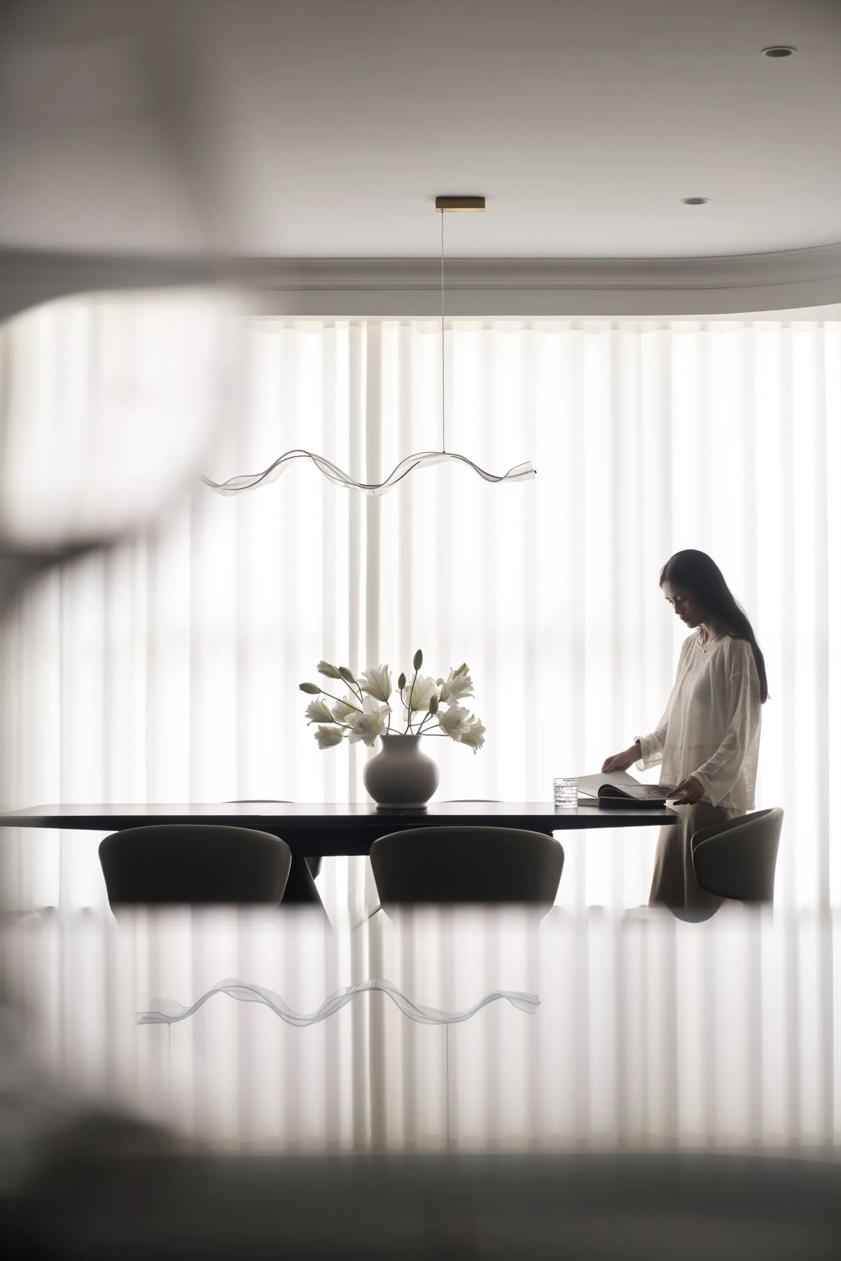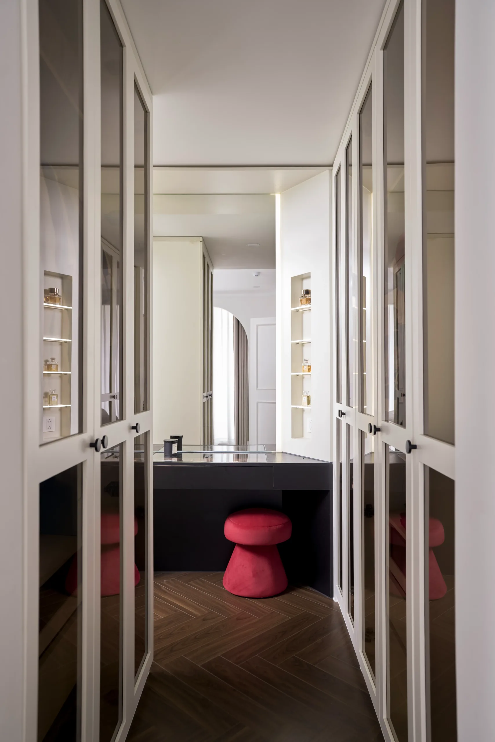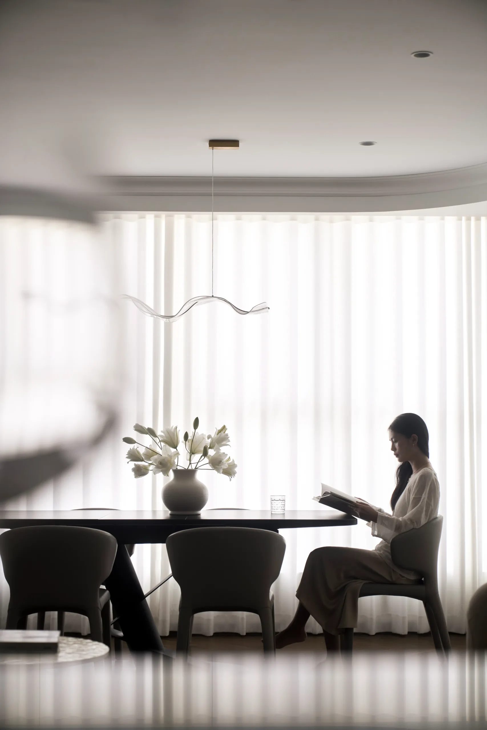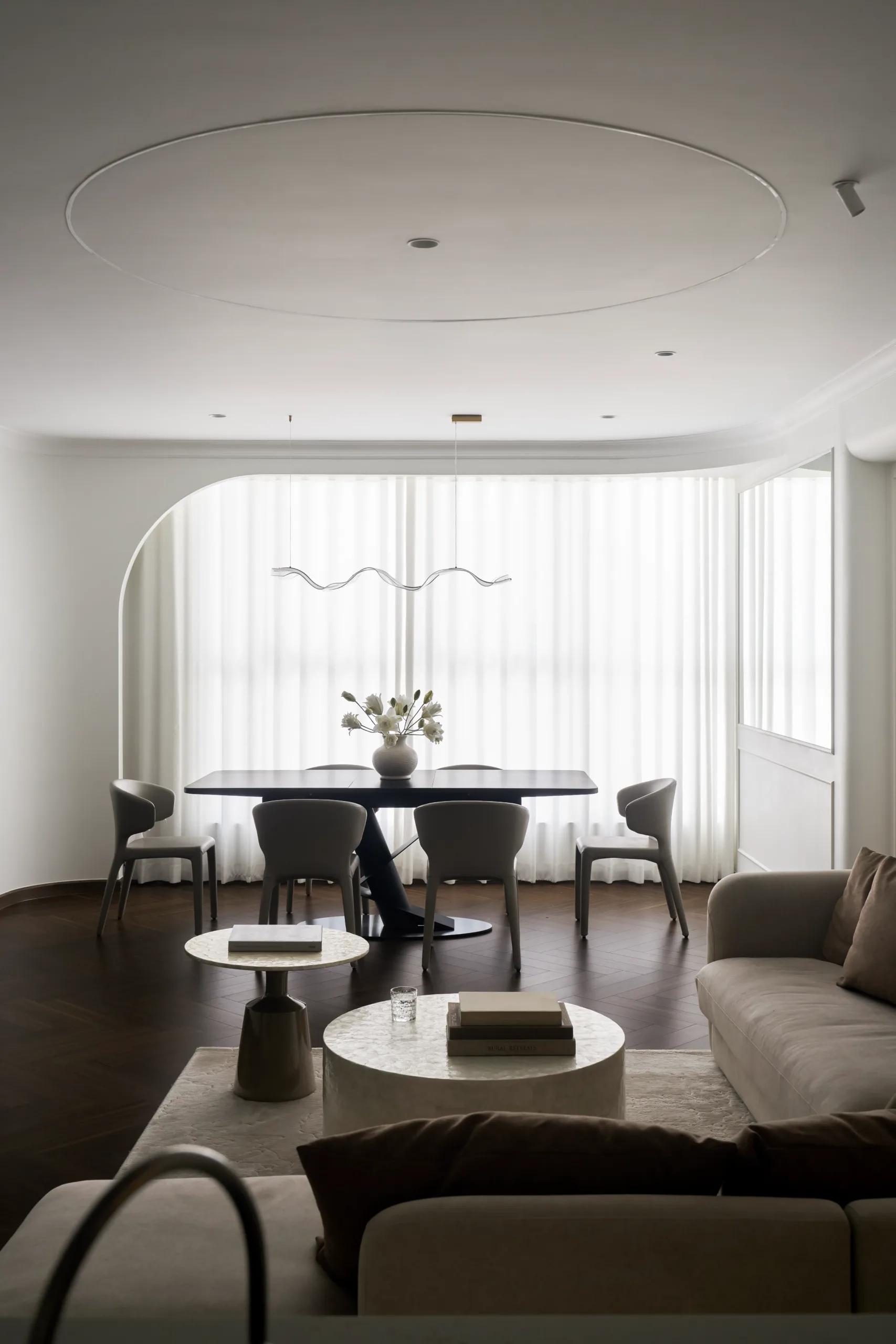 Các không gian riêng tư được lùi về hai bên, giữ sự tách biệt cần thiết, để trục trung tâm được dành trọn cho ánh sáng, cảnh quan và trải nghiệm sống liên tục.